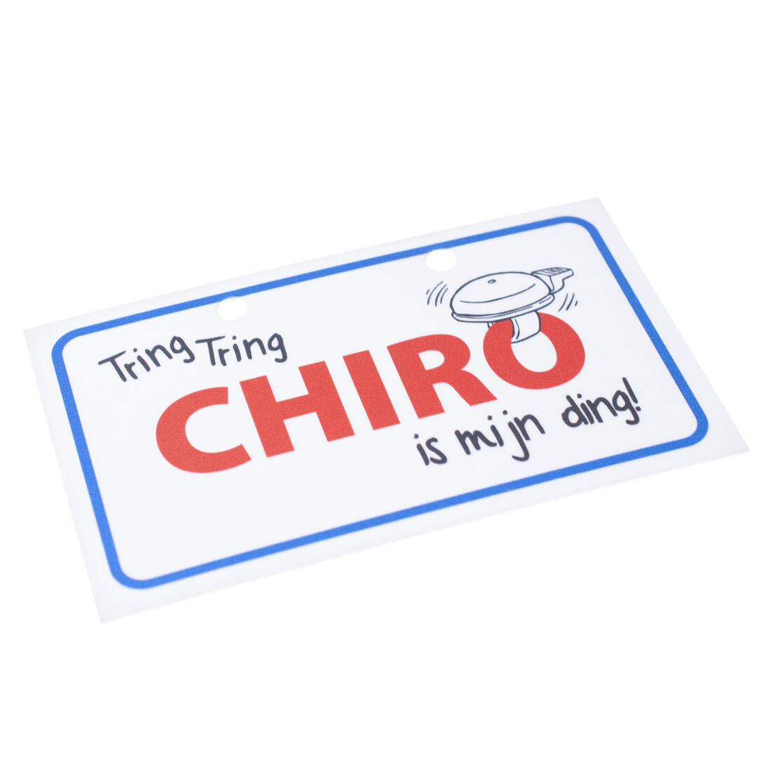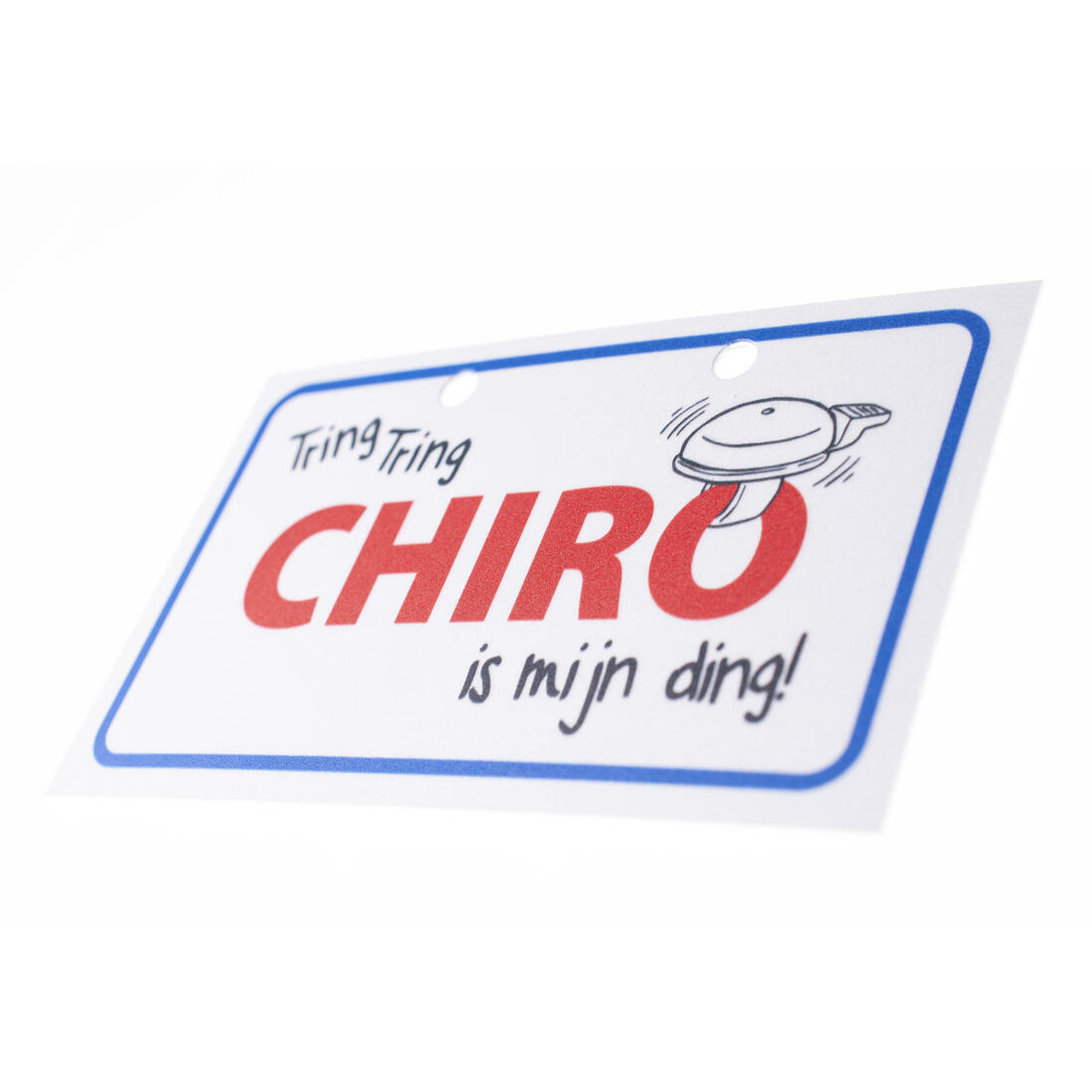 Reflecterend fietsplaatje Tring tring Chiro is mijn ding!